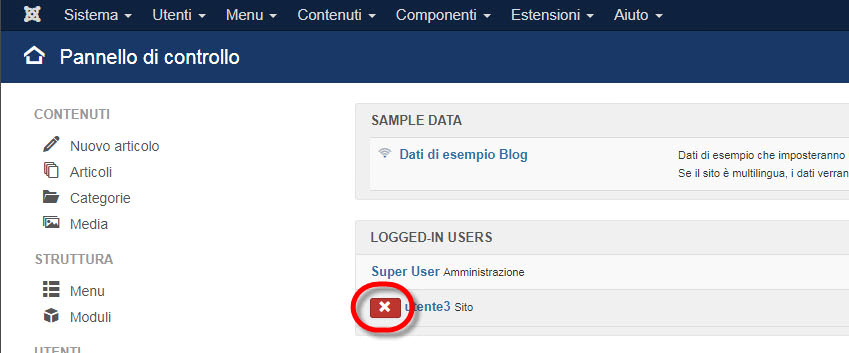 Se hai necessità di forzare il logout di uno o più utenti (ad esempio prima di mettere offline momentaneamente il sito) puoi effettuarlo come amministratore direttamente dal Pannello di controllo del backend.