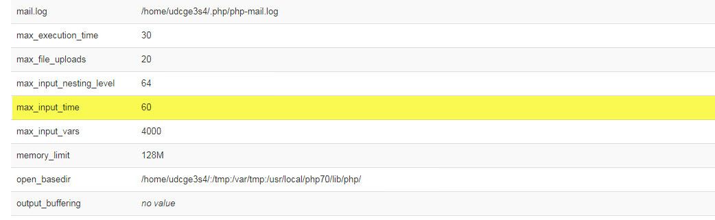 Il tempo massimo consentito è definito in una direttiva PHP , visualizzabile nelle Informazioni di sistema, nel tab Informazioni PHP. Qui vedi la direttiva PHP max_input_time: in genere è impostato come valore 60: significa che il tempo massimo per i processi è di 60 secondi; dopo tale durata i processi vengono interrotti.